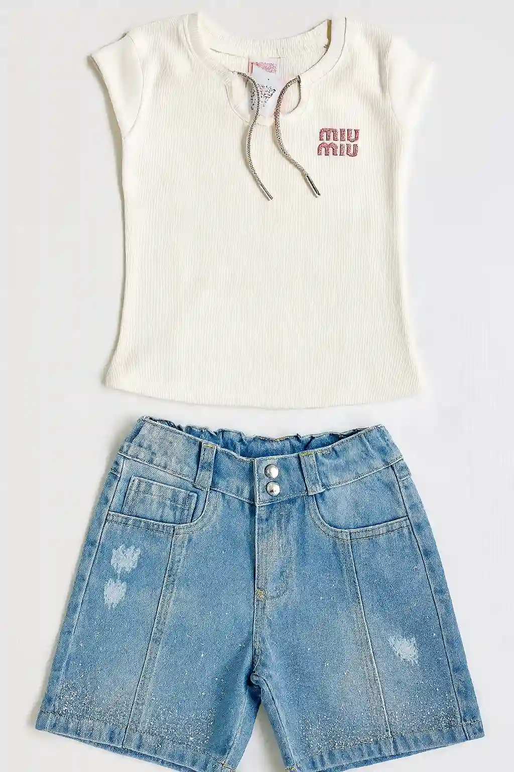 Este conjunto ofrece comodidad y estilo en una sola prenda: la blusa rib con estampado en strass aporta un toque moderno y llamativo, mientras que el pantalón denim con pretina elástica y detalles destroyer garantiza libertad de movimiento, resistencia y un look urbano único.