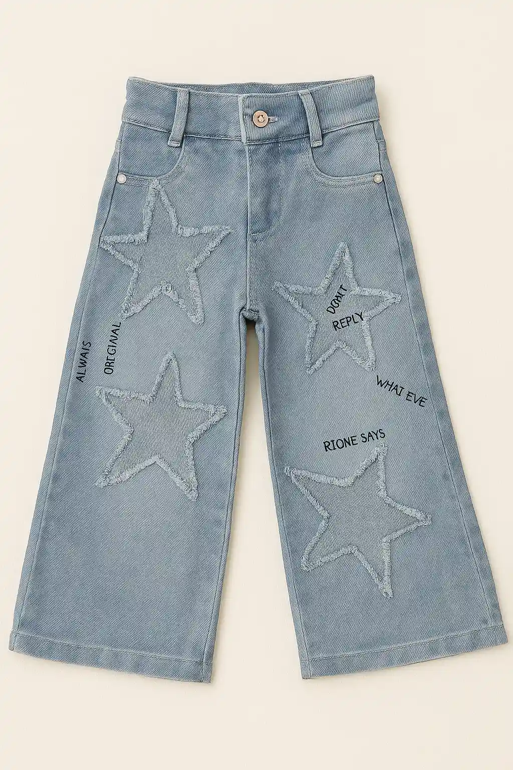 Este set de mezclilla para niña destaca por su diseño moderno compuesto por chaleco sin mangas y pantalón de corte recto. Incluye botones frontales, detalles bordados y aplicaciones en forma de estrellas que le dan un toque divertido y único. Confeccionado en denim suave y resistente para asegurar comodidad y estilo.