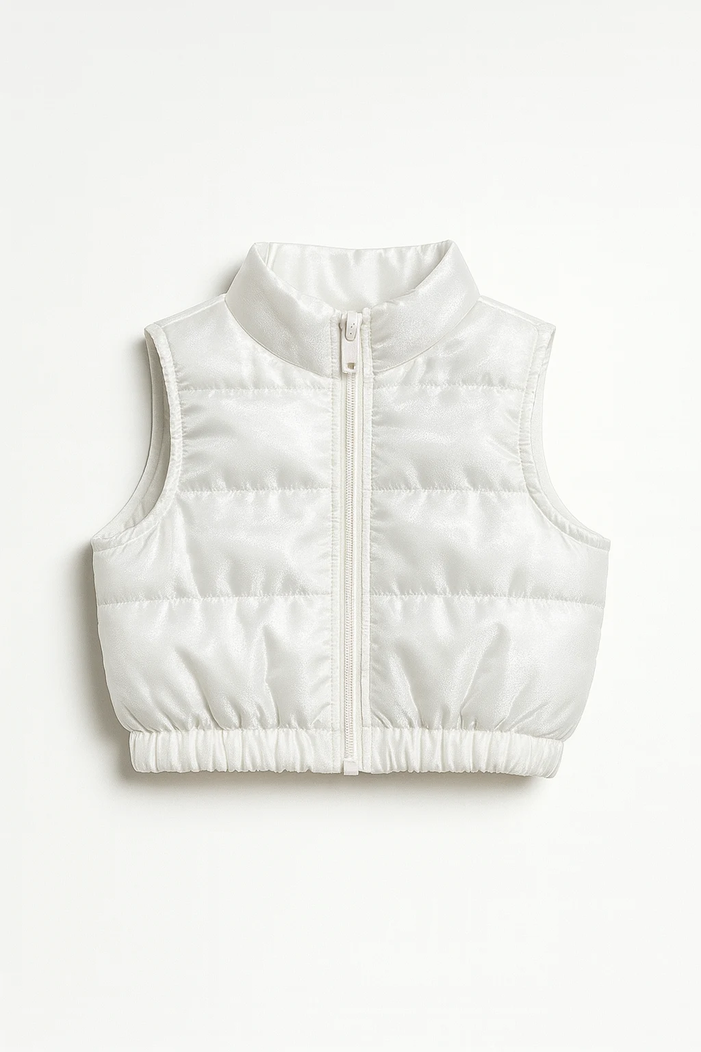 • Chaleco puffer con efecto satinado y cierre frontal.