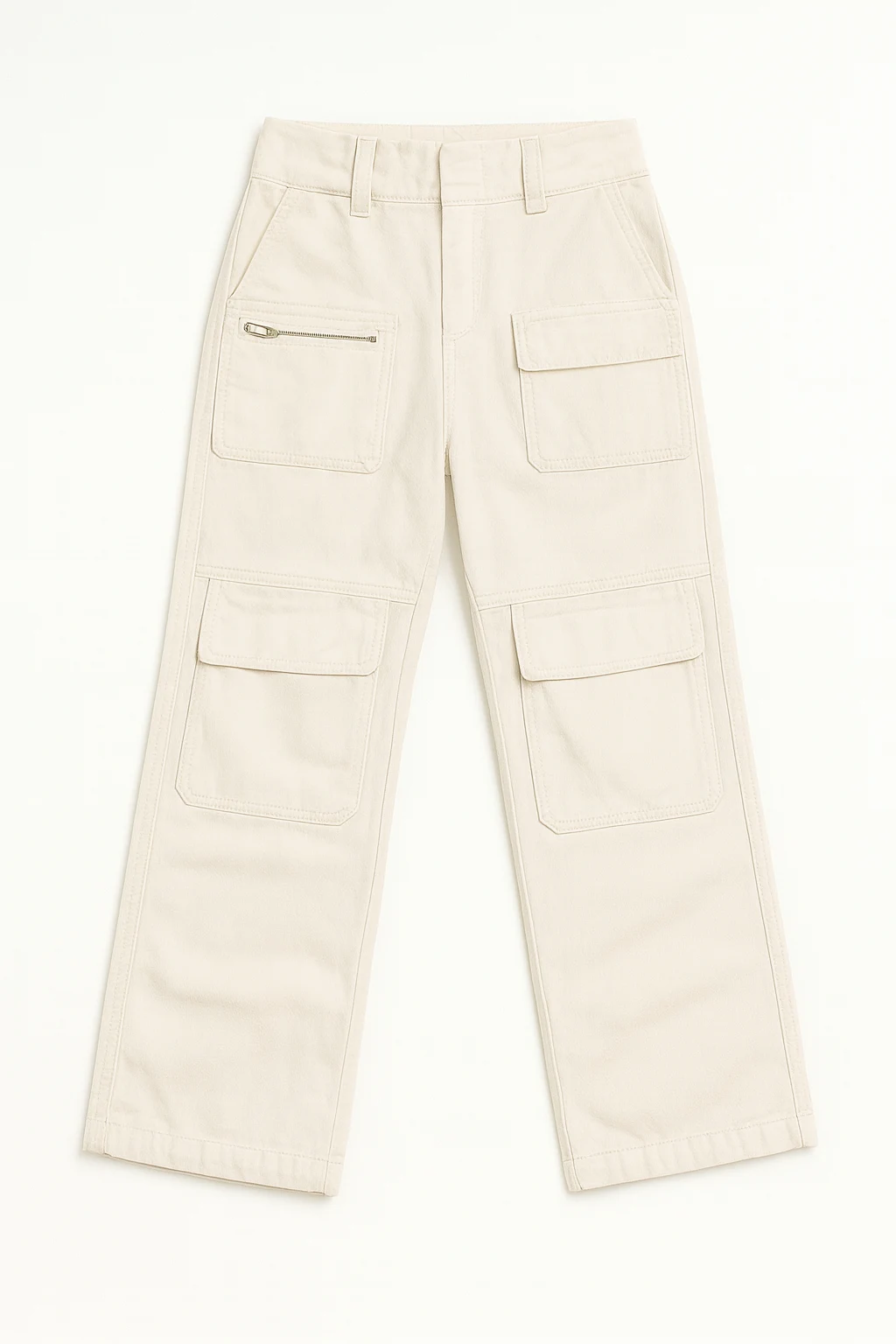 • Pantalón cargo con bolsillos amplios y cintura ajustable.