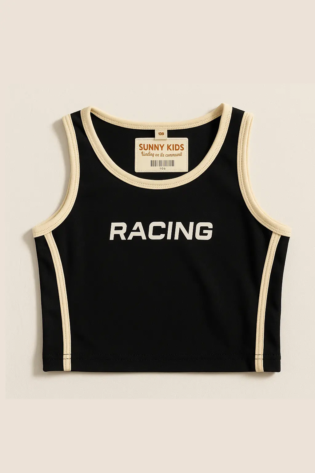 Conjunto moderno y cómodo, ideal para destacar con estilo: top negro “RACING” con ribetes beige que aporta un toque deportivo y shorts beige de textura suave con bolsillos traseros, perfectos para un look casual pero con mucha personalidad.