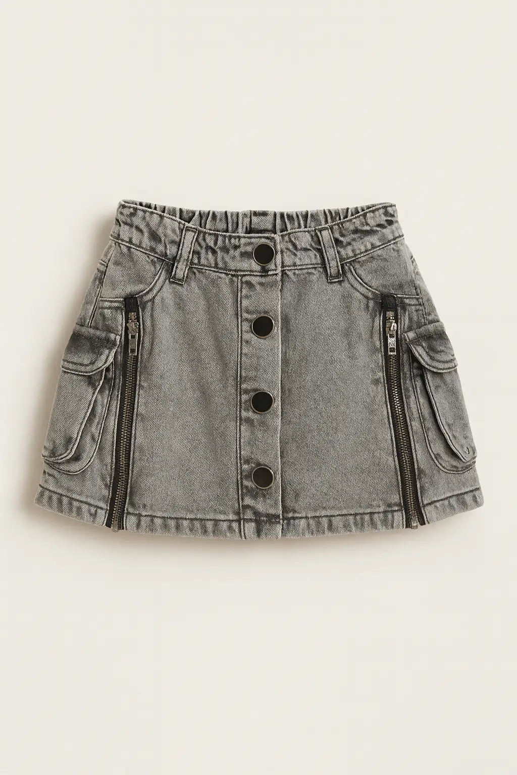 - Falda con bolsillos funcionales y cierres decorativos.